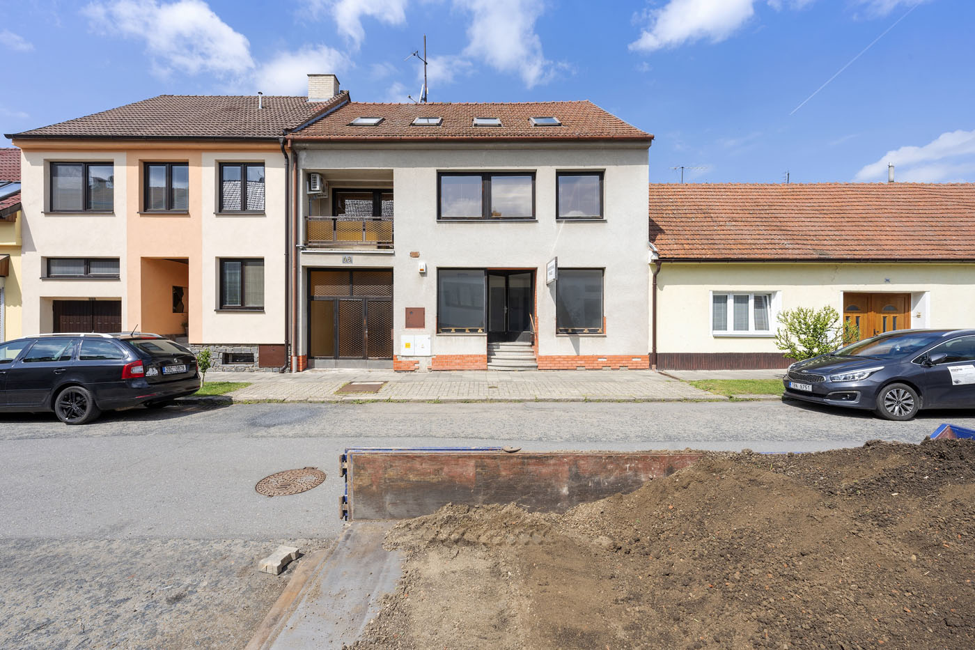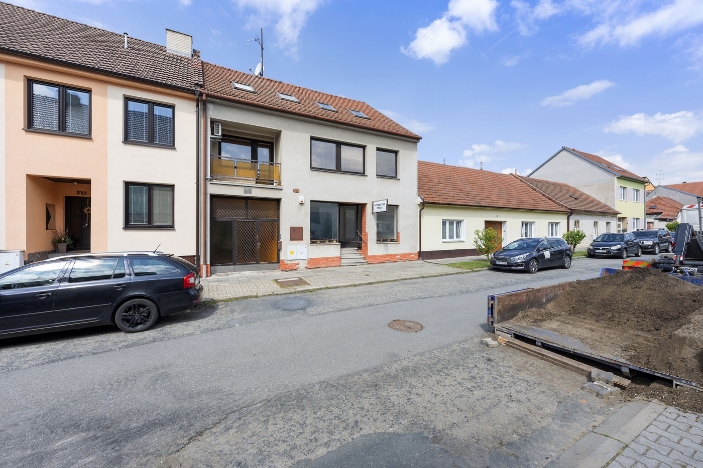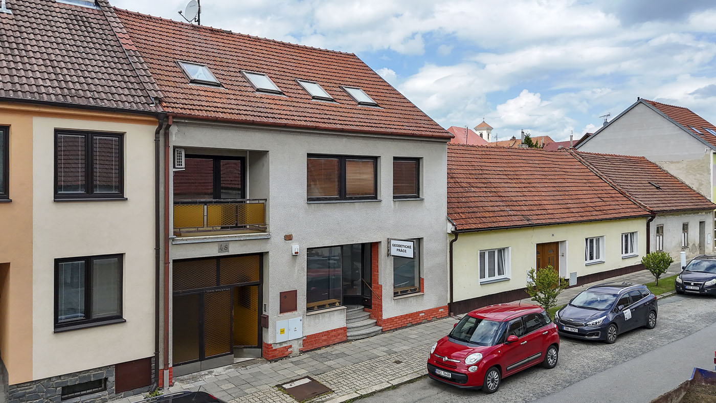 Aktuální stav: V přízemí se nachází obchodní jednotka, kterou je možné okamžitě užívat či pronajmout. Je přístupná z ulice i průjezdu. Má vlastní měření energií a klimatizační jednotku. V průjezdu je pohodlné parkování pro jedno auto. Schodištěm se odtud dostaneme do prvního patra, kde je umístěn hlavní obytný prostor (37 m2), kuchyně, sociální zázemí a ložnice. Z kuchyně se vstupuje na prostornou (35 m2) terasu. Po schodišti se dostaneme do druhého patra, kde jsou dva větší a dva menší pokoje a sociální zázemí.