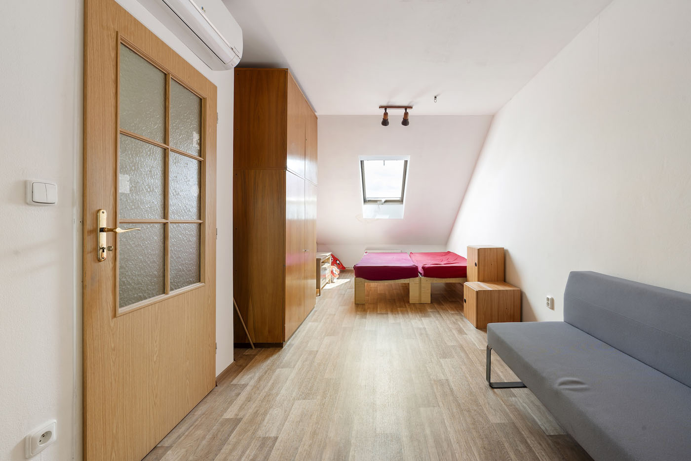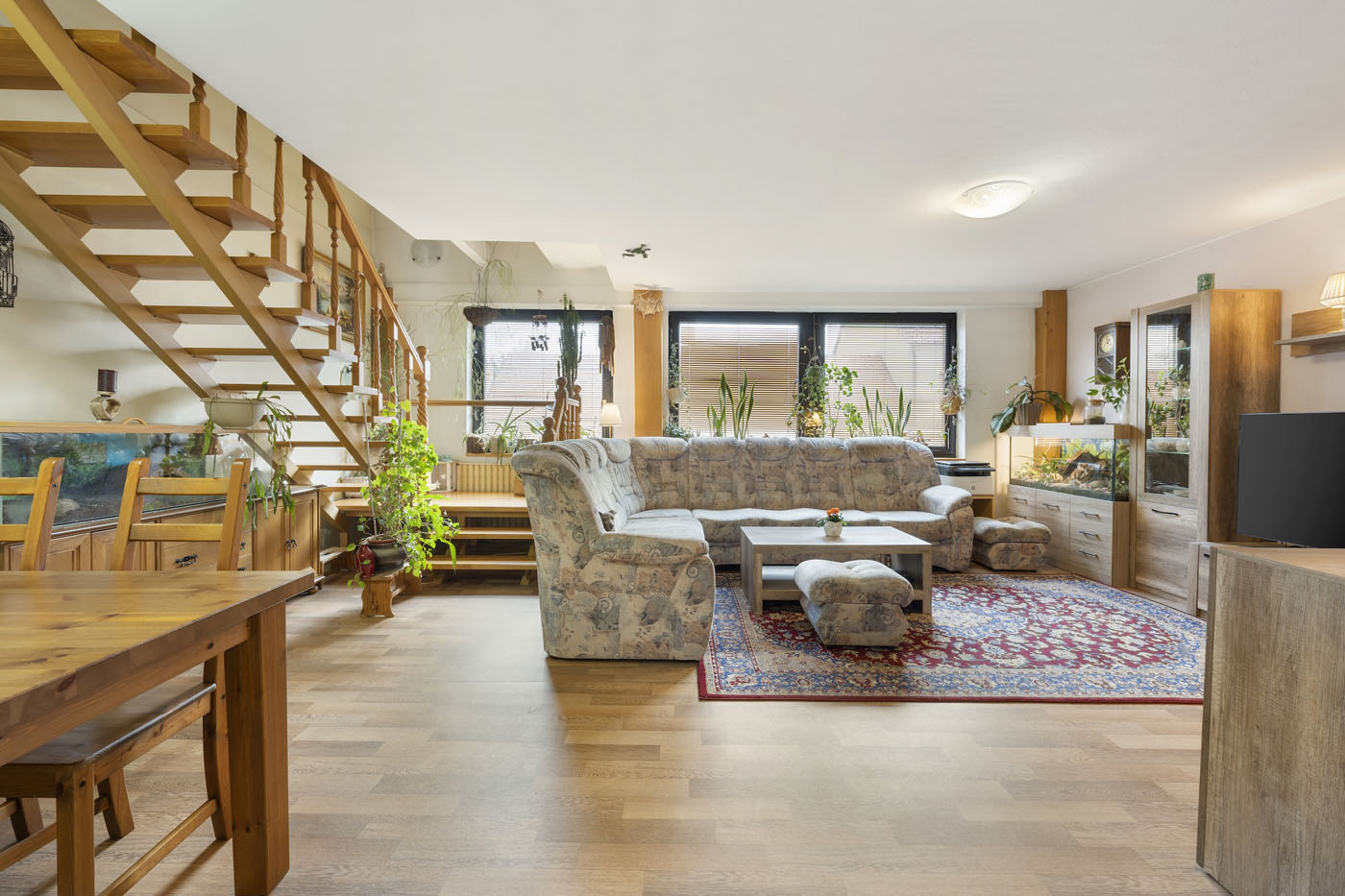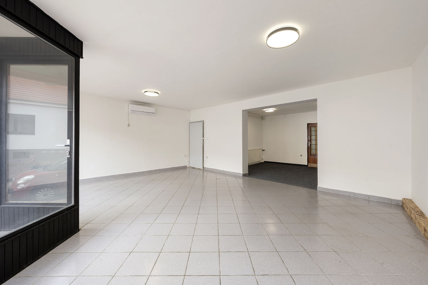 Aktuální stav: V přízemí se nachází obchodní jednotka, kterou je možné okamžitě užívat či pronajmout. Je přístupná z ulice i průjezdu. Má vlastní měření energií a klimatizační jednotku. V průjezdu je pohodlné parkování pro jedno auto. Schodištěm se odtud dostaneme do prvního patra, kde je umístěn hlavní obytný prostor (37 m2), kuchyně, sociální zázemí a ložnice. Z kuchyně se vstupuje na prostornou (35 m2) terasu. Po schodišti se dostaneme do druhého patra, kde jsou dva větší a dva menší pokoje a sociální zázemí.
