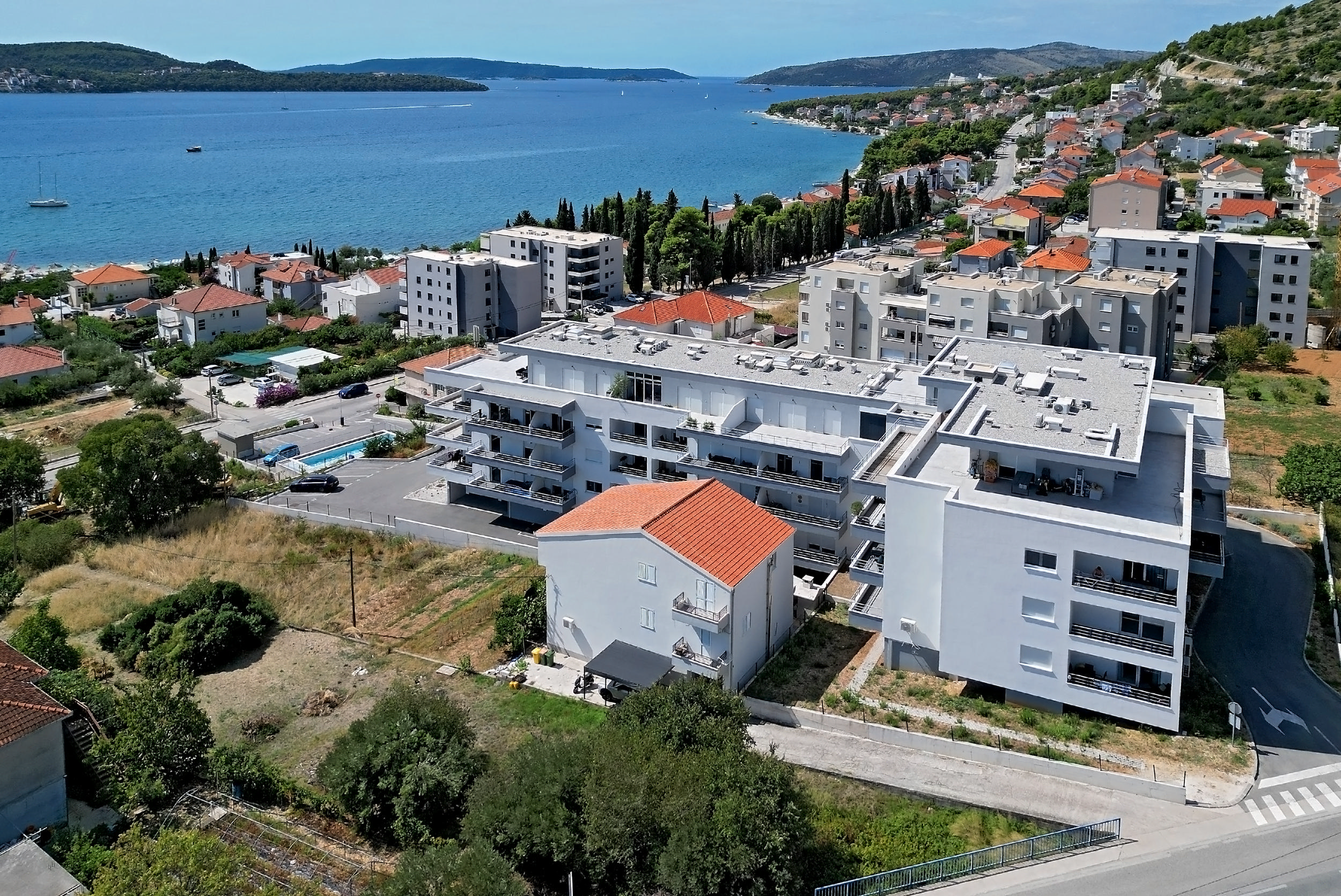 Krásné čisté pláže s výhledem na ostrov Čiovo jsou v docházkové vzdálenosti asi 200 m, v místě je kompletní vybavenost kaváren, restaurací a obchodů.